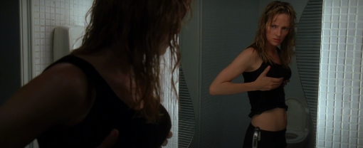 키도가 회상을 하며 설명합니다. 빌이 암살단 멤버중에서 가장 믿음직하고 싸움도 잘하는 키도한테 중국 누구를 암살하고 오라는 지시를 내려요. 중국으로 가는 비행기 안에서 키도는 임신테스기를 해보는데 임신이 됐다는 두 줄 표시가 나오고.. 중국에 도착해서 만감이 교차하는 표정으로 호텔에서 사람을 기다리고 있는데요...그런데~!! 그 쪽에서도 청부살해업자를 보냈던 겁니다. 키도에 버금가는 실력을 가진 여자 킬러. ㅎ 음식 배달 왔다고 위장하고 들어와서 총을 겨누는 킬러한테 자기 임신했다는 키도 ㅋ 키도는 자기를 죽이려고 온 킬러한테 자기가 방금 임신했다는 것을 알았다며 우리 서로 없었던 것으로 하고 돌아가자고 하면서 임신테스트기를 보라면서 던집니다. 당황한 그 킬러는 자기쪽으로 던져진 임신테스트기를 보더니.. 너가 임신이든 아니든 자기랑 무슨 상관이냐고 하지만..키도의 간절한 눈빛을 보고 .. 킬러는 얼마간 망설이다가 총을 계속 겨눈 채 뒷걸음질 치면서 방문을 완전히 나가서는 축하한다고 하고 그냥 가버리죠. 그래서 키도는 아이를 키울 수 있는 환경에서 살기 위해.. 음반가게에서 일하며 평범한 삶을 사는 토미라는 남자를 만났던 것이고 빌을 포함한 조직원들 몰래 도망쳐서 결혼식을 하려고 했던거였구요.