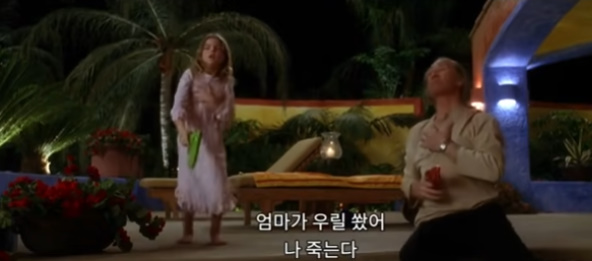 빌의 행방을 알기위해 찾아간 사람이.. 멕시코 어디에서 50년 넘게 매음굴을 운영하는 포주..빌과 동생 버드의 양아버지격인 사람한테 빌의 행방을 알아낸 키도는 곧바로 차를 몰고 가죠. 아방궁 같이 큰 집.. 입구부터 경계하며 들어가는데 왠지 안에 빌이 있을 것 같은 문을 벌컬 열고 총을 들이대자... 빌과 비비라는 이름의 4살정도 돼 보이는 여자아이가 총놀이를 하고 있죠. 딸이 살아있을 것이라고 꿈에도 생각 못했던 키도. 저 아이가 설마~ 하며 놀란 표정으로 입도 못 다물고 있는데.. 비비가 엄마~하면서 뛰어와 키도한테 안기자.. 키도는 눈물을 흘리고.. 너가 언젠가는 깨어나 찾아 올거라고 비비한테 엄마 사진도 보여주고 얘기도 많이 했어다고 빌은 말하죠. 주방에서 샌드위치를 만들며 빌은.. 자기가 엄마한테 한 행동을 딸아이한테 설명해주고 옆에서 키도는 조용히 듣고 있어요. 그렇게 셋은 얼마동안 같이 대화도 하고 시간을 보내고..