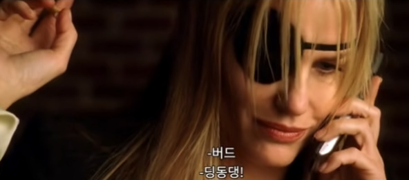 암염탄 두방을 가슴쪽에 맞고 움직이지도 못하고 자기를 내려다 보며 비아냥 거리는 버드를 보고 있는데요. 그렇게 잘 움직이지도 못하는 키도를 버드는 발로 몇 번 걷어 차더니 아예 못 움직이게 마취제를 엉덩이에 놔버립니다. 널부러져 있는 키도를 두고 버드는 암살단 다른 멤버였던 엘한테 전화를 해요. 복수에 날뛰는 키도를 자기가 잡았다면서 핫토리 한조의 마지막 검을 팔겠다고하면서(키도꺼 ㅎ) 100만달러를 현찰로 가지고 자기가 있는 곳으로 내일 아침 부리나케 오라고 해요. 알겠다는 엘이 키도를 최대한 고통스럽게 죽여달라는 조건을 달죠.