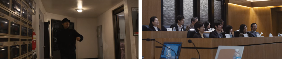 그 때.. 사건의 수사팀은 철민이 범인이라고 강한 의심을 갖고 있었지만 증거 불충분으로 철민이 풀려났었던 것이라고요. 호원이.. 이 자료들은 어디서 났냐고 묻자.. 익명의 이름으로 누군가가 성희한테 보내 온 자료들이죠. 다음 화면이 안검사(박희순)와 CCTV 속 검은 복장의 남자가 대화를 하는 장면이 나오는데.. 안검사가 쓸데없는 짓을 했다고 하자.. 옆 남자가.. 철민을 변호하려면 그 정도는 알고 있어야 하지 않냐고 하죠 ㅎ (결국..익명의 누군가가.. CCTV 속 남자) 원래 경찰이었던 그 남자한테..증언하면 경찰에 다시 복직 할 수 없을거라 안검사는 말하지만.. 자기는 어떻게든 이기고 싶다며.. 너의 증언이 필요하다는 말에.. 뭔가 생각하더니.. 남자는 인사를 하고 가버리고. 정보력이 뛰어난 호원은 그 CCTV 속 남자가 서민석 형사이며 과거 여고생 살인사건을 수사했었던 형사라는 것과 그 때 사건에서 경찰대 교수가 취조 후 범인 아니라고 (철민이..)한 다음에.. 다 엎어졌었다는 정보를 입수하게 됩니다. 그 경찰대 교수를 만나 성희는 이것저것 물어보려 하지만.. 그 관련건에 대해서는 상부에서도 금하고 있고 할 말이 없다고 말을 아끼죠. 왜 경찰이.. 철민을 범인으로 생각했냐는 질문에.. 무표정한 표정과 지문도 하나도 없고.. 3일 내리 취조하는데도 한치의 흐트러짐도 없었다는 점과...증거도 없었지만 알리바이도 없어서.. 꼭 범인 같아서 의심을 했었다는 답변을 들어요. 되려 경찰들이 진이 빠져갈 무렵 용의자 철민을 폭행했던 형사가 있었는데 그게 바로 서민석 형사..CCTV 속 남자였던거죠. 경찰대 교수가 철민을 취조하는 회상장면에서.. 교수는 철민한테 자백을 받아내려고 .. 얼굴 보자마자 너가 범인이라고 지목한 목격자도 있다면서 ..그러니깐 자백하고..심신미약이라고 해줄테니.. 병원으로 가서 치료받고 나오자는 말을 하는데요.. 무표정으로 천천히 교수를 바라보며 철민은.. "그 분이 아마도 착각을 한 것 같습니다~" 라고 하고. 교수는 이미 철민한테 눈빛으로 제압된 상태. ㅎ