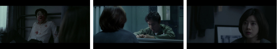 홍콩. 얼마간의 시간이 흐르고.. 완쾌된 성열과 지연은 홍콩 여기저기를 다니며 여행을 하고 있습니다. 영화내내 침울한 표정인 지연은 어느정도 치유가 된 것처럼 환한 표정이구요.. 지연이 잠깐 어디 간 사이 성열 혼자 신호등 앞에 서 있습니다. 갑자기 들려오는 한국 말.. "홍콩 뭐 볼거 없죠~?" 깜짝 놀라 돌아보면... 머리를 올백으로 넘기고 느물거리는 패션인 박경호가 선글라스를 낀 채 서 있구요..성열은..너 잘 만났다며 멱살을 잡고 당장 경찰서로 가자며 잡아 끄는데요.. 박경호가 이거 왜이러냐며 성열의 손을 뿌리치고 침착하게 하는 말이.. 형사님 와이프는 사람을 죽였지 않냐고 합니다. 너랑 석준이 작당을 해서 죽인거지 뭔소리냐며 발끈하는 성열한테.. 씨익 웃어보이는 박경호가 말합니다. "내가 언제 형사님 와이프가.. 조동철을 죽였다고 했습니까..? 딴사람을 죽였다고 했지?!" 그러면서 성열 뒤로 지연이 오고 있음을 알려주죠.